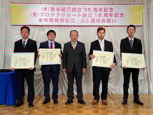 30年2名、20年1名、10年3名と年月を重ね、当社の誇らしいプロフェッショナルの皆さんです。