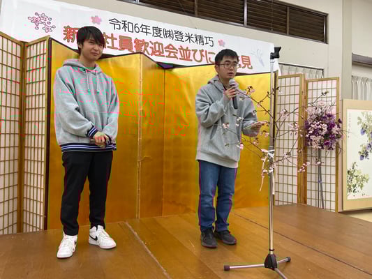 歓迎会では新入社員が緊張気味ではありましたが、元気いっぱい自己紹介と抱負を話してくれました。