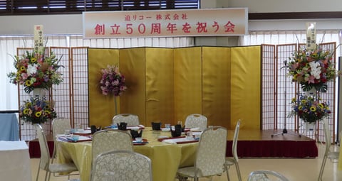 弊社、取引先である迫リコー(株)様が創業50周年を迎え、OB会と協繁会の共同主催で盛大に祝賀会が